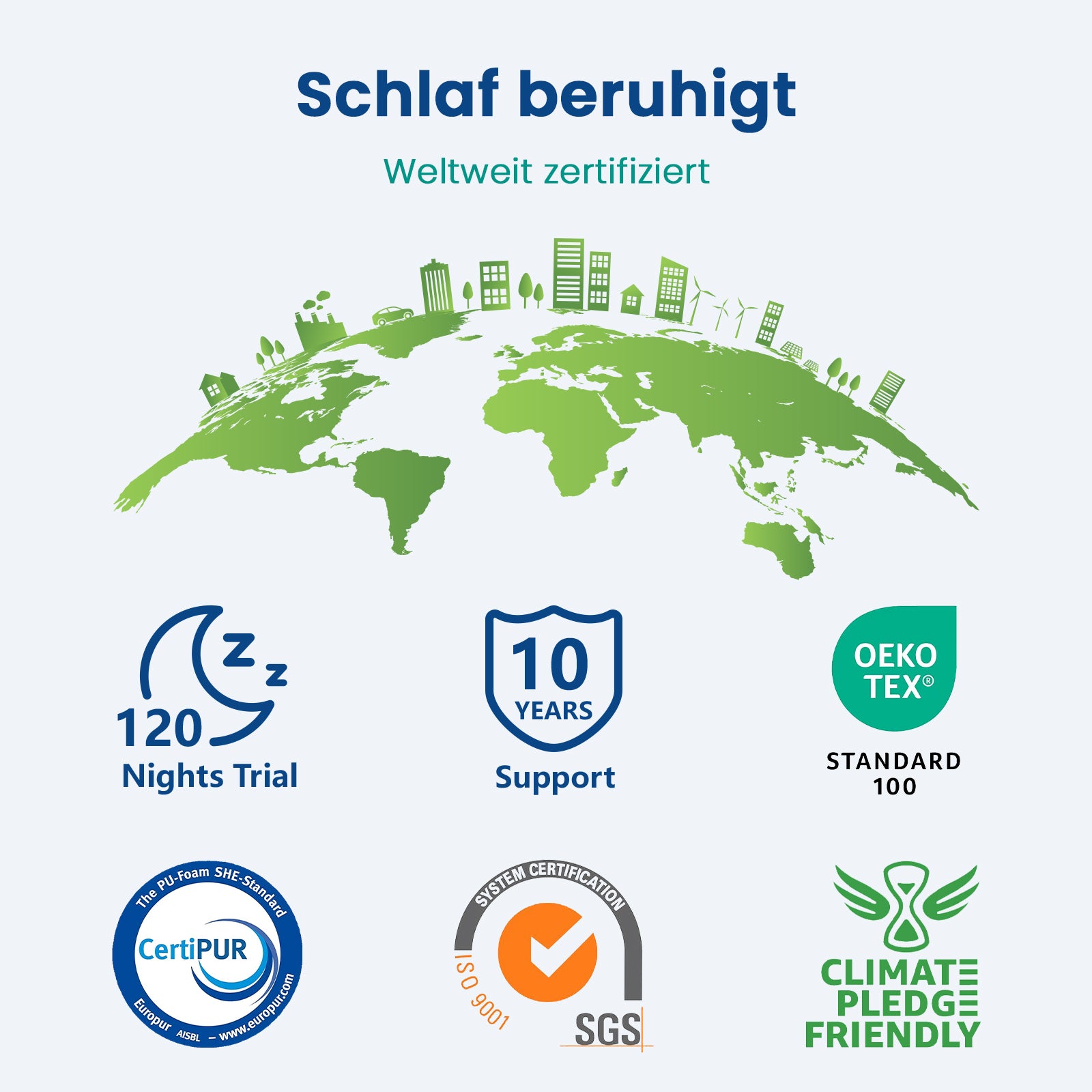 Mit seinem 2-Schicht-Design kombiniert unser Topper den H2-Gel-Visko-Schaum (3 cm) und den H3-Komfort-Hartschaum (4 cm).