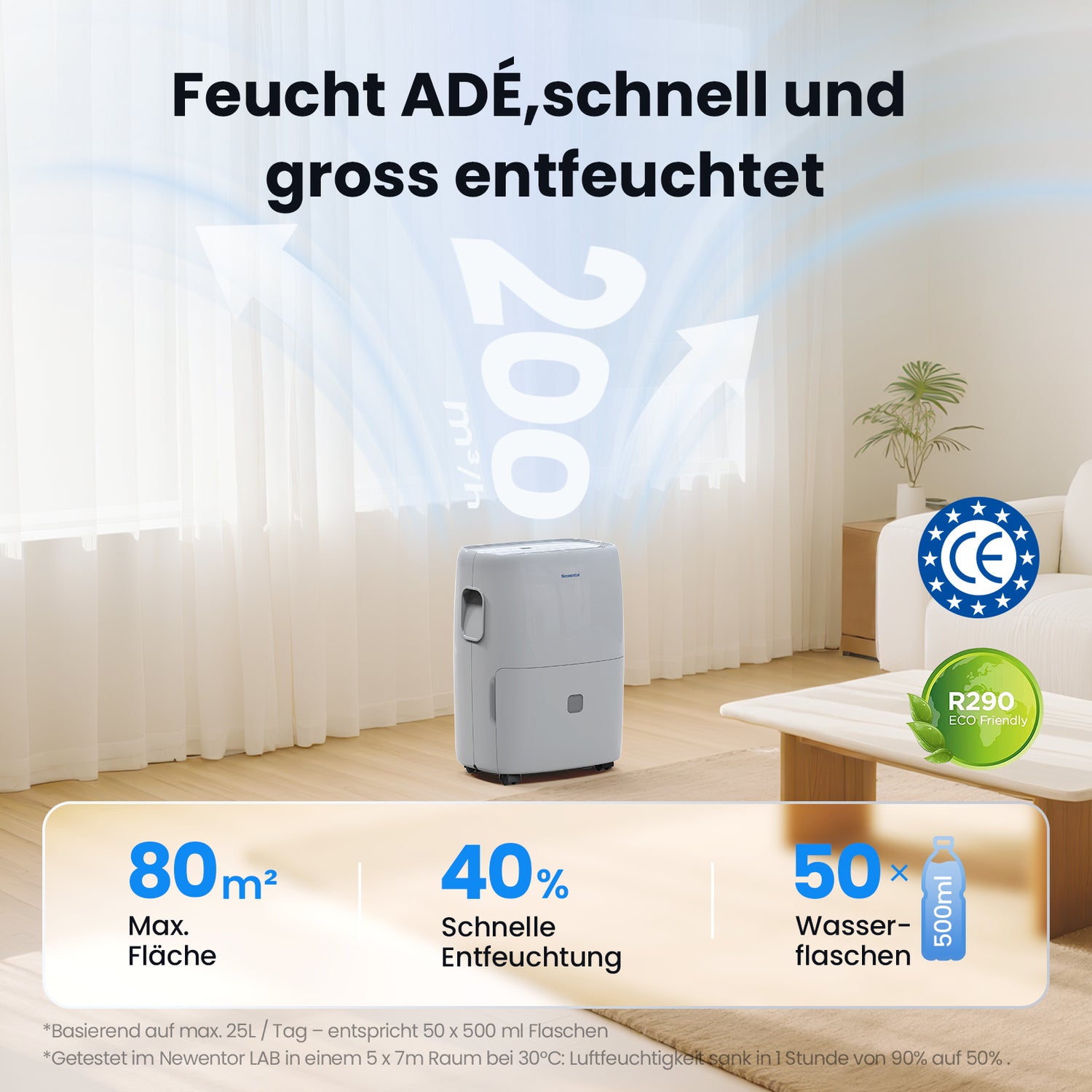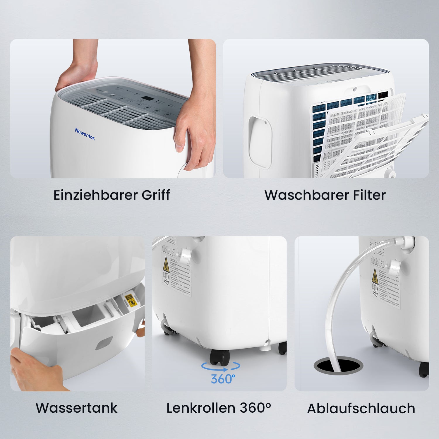 Die superschnelle Entfeuchtung sorgt für hohe Effizienz, der leise Betrieb für Ruhe und die energiesparende Technologie für Kosteneinsparungen. Das durchdachte Gesamtdesign zielt ausschließlich darauf ab, Ihnen einen erfrischenden, ruhigen und wirtschaftlichen Lebensstil von hoher Qualität zu bieten.