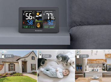 Die kabellose Temperaturvorhersagestation unterstützt bis zu 3 Fernsensoren zur Überwachung von Innen- und Außentemperatur und Luftfeuchtigkeit an mehreren Standorten. Die digitale Wetterstation verfügt über einen Fernsensor.